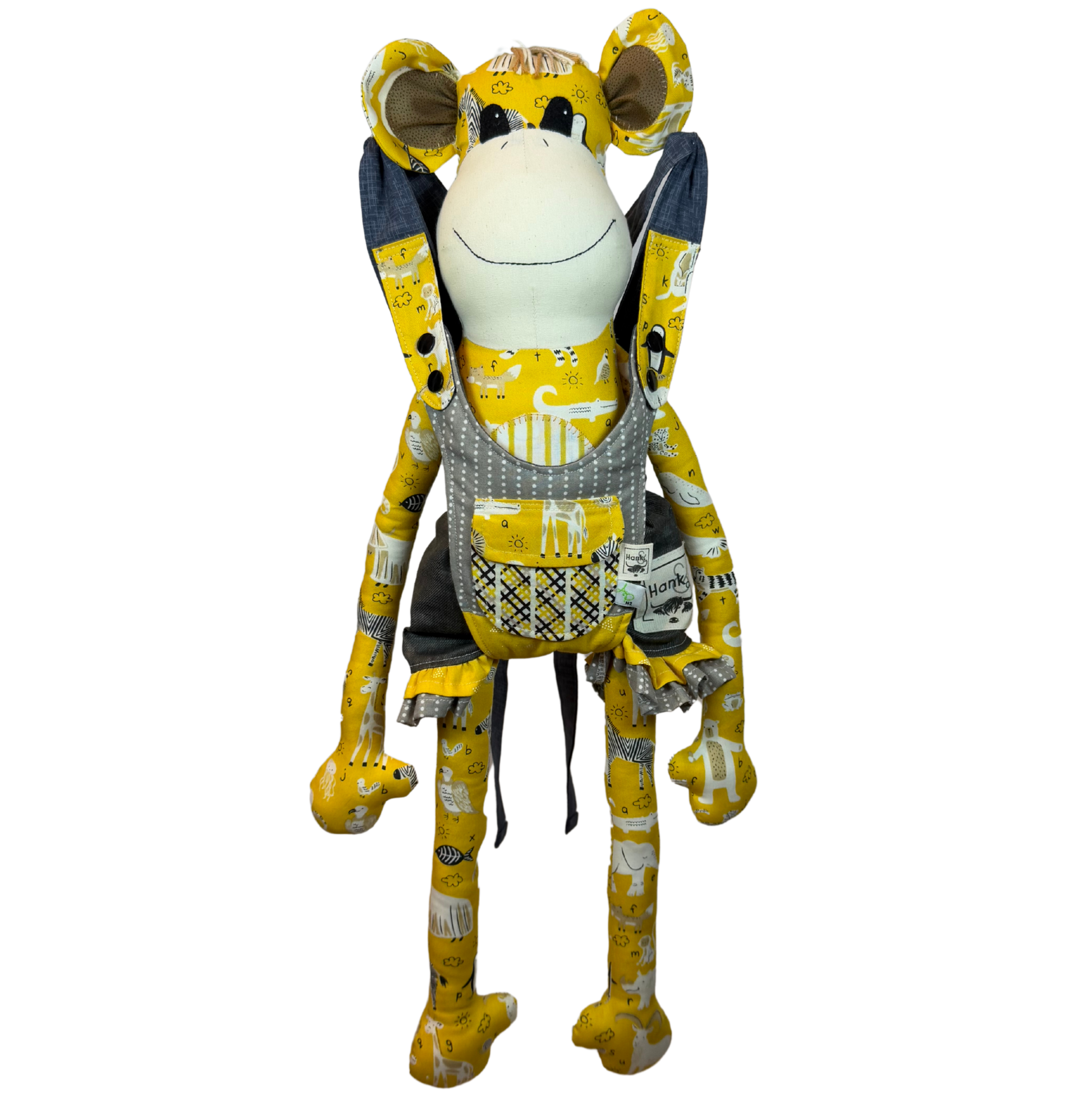 Each design is one-of-a-kind, ensuring that no two are ever the same. The monkey comes in both small and large sizes, each perfectly sized to fit snugly into the carrier as shown.